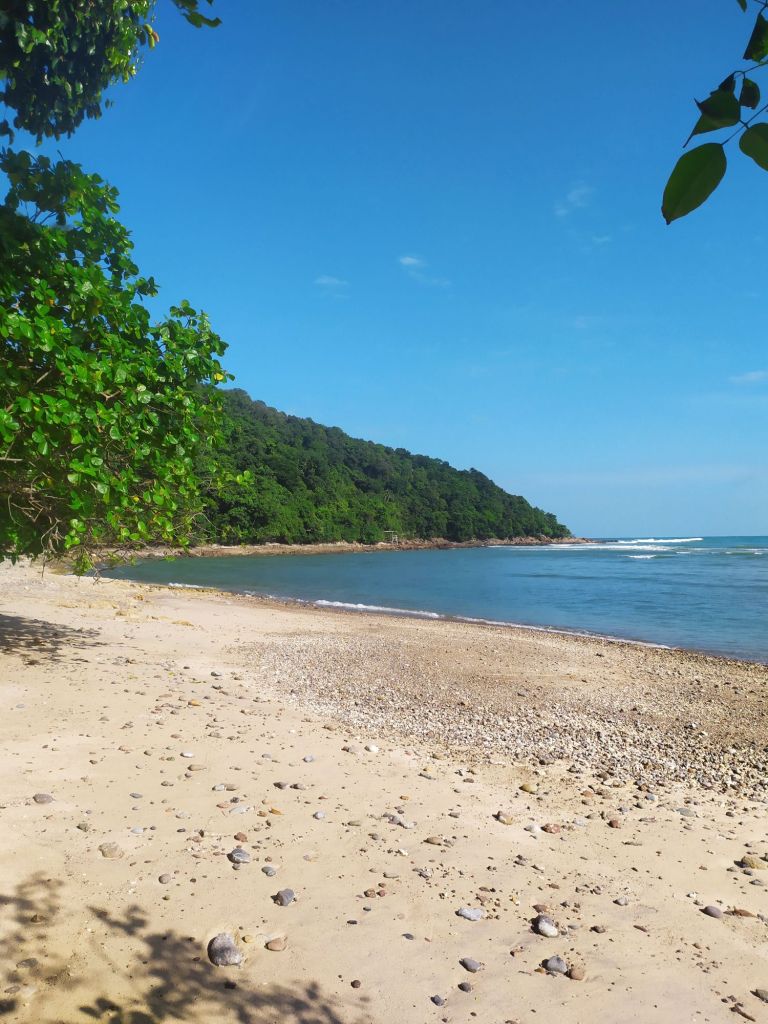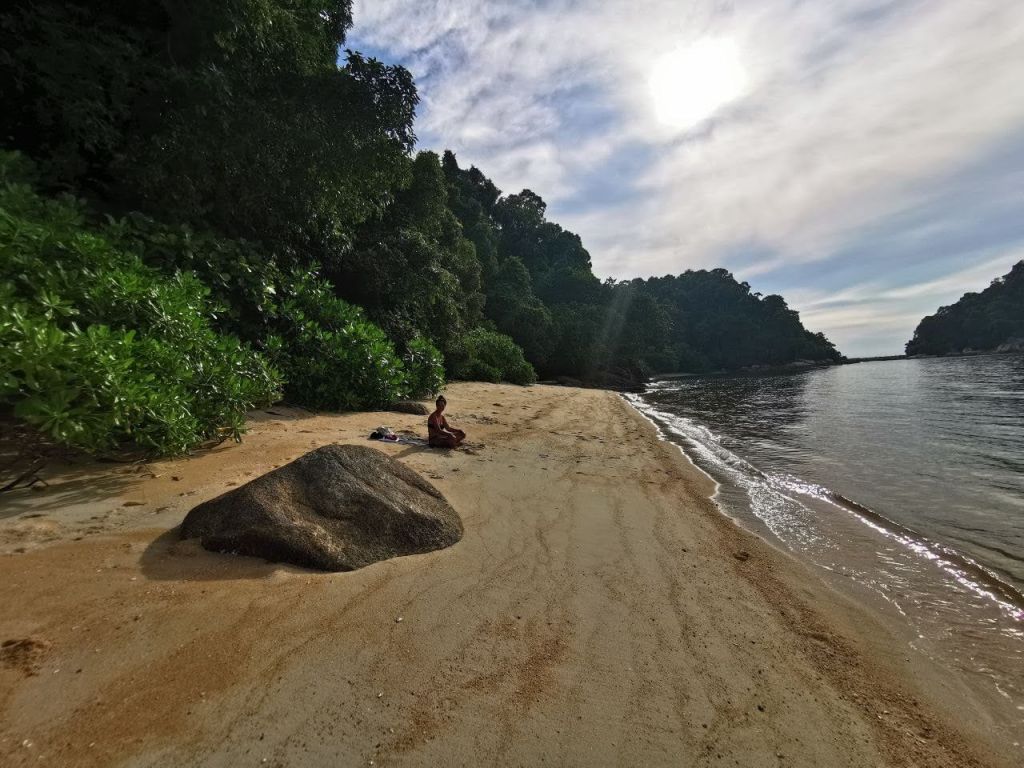 Y de isla en isla y tiro porque me toca, de Penang salté a la pequeña Pulau Aman o isla de la paz, donde pasé el día haciendo tiempo antes de coger mi próximo bus a la costa este. Con una pequeña y rústica bici recorrí un trocito del camino que rodea la islita, parándome a conversar con las hijas de una familia que hacía picnic en la playa con ganas de practicar su inglés, y me llevé de regalo una picadura de medusa y también el remedio para calmar el picor: marro de café!